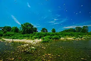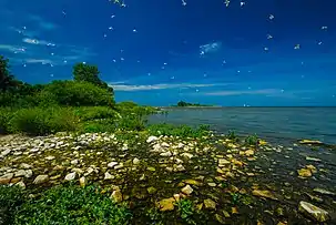![]() In June 2020 when this picture was taken the average lake level was 177.45 meters above sea level;[1] the relatively high lake levels reduced the size of the islands that year. | |