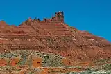 Sister Superior is a 6,037 ft elevation sandstone summit located southeast of The Convent in Grand County of Utah, United States. Sister Superior is located between Professor Valley and Castle Valley, near the city of Moab. It is situated east of Parriott Mesa and southwest of the Fisher Towers area. Remnants of an eroded butte,[3] Sister Superior is a thin tower with 300+ ft vertical Wingate Sandstone walls standing on a 1,000 foot Moenkopi-Chinle base. The nearest higher peak is The Rectory (6,565 ft), 1.2 miles (1.9 km) to the south. Further south along the connecting ridge is Castleton Tower. Precipitation runoff from Sister Superior drains into the nearby Colorado River. The first ascent was made May 17, 1965, by Harvey Carter and David Bentley.[4]