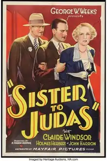 Sister to Judas is a 1932 American drama film directed by E. Mason Hopper and starring Claire Windsor, Holmes Herbert and John Harron.[1]