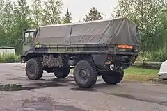 Sisu SA-150 is a medium-size, two-axle off-road lorry made by the Finnish heavy vehicle manufacturer Oy Sisu-Auto Ab from 1982 until 1991. The four-wheel-drive lorry with load capacity of 6 400 kg was developed for pulling of heavy cannons of the Finnish Defence Forces.