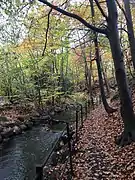 - Österlen, 188 km, starting and ending in Ystad. Between the cities of Simrishamn and Kivik the trail passes through Stenshuvud National Park. The northern part of the trail passes through Brösarps slopes and Hallamölla waterfall.