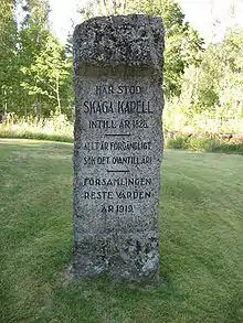 In spite of protests from the parishioners, the Diocese had the church demolished, but the destruction could not take place before the death of Pehr Tham, who actively protected the church and died in 1820.[5]