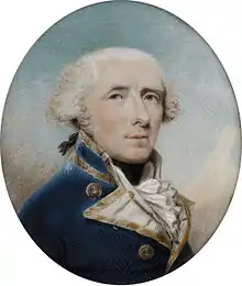 He was almost immediately posted to the new fifth rate HMS Perseverance, and commissioned her in March.[17] By September he was back on the North American station, re-capturing the 20-gun HMS Lively on 29 July during his voyage across the Atlantic.[17] The next two years were spent on the North American station, capturing a number of American privateers during this time, the General Green on 30 August 1781, the Raven on 1 April 1782 and the Diana on 29 August 1782. The Perseverance was paid off after the conclusion of the war.[17] Lutwidge is next recorded as taking command of the third rate HMS Scipio in November 1786, the Scipio then being a guard ship on the River Medway.[18] In December 1792 he commissioned the new third rate HMS Terrible. With the outbreak of the French Revolutionary War he sailed in April 1793 to join the Mediterranean Fleet to join Admiral Samuel Hood.[19][20]