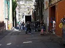 Elizabeth Street, Melbourne, Australia, has an issue involving drug abuse, homelessness, and vagrancy. The Herald Sun, in two 2016 articles about the growing homelessness, drug and alcohol abuse, and disturbance issues, described the street's southern end towards Flinders Street as Melbourne's 'skid row.'[75][76]