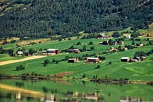 In addition, one side of the valley, solsida ("the sunny side"), has a southern exposure, whereas baksida (the "back side") gets very little sun. Agriculture has been enabled by elaborate irrigation systems for hundreds of years, so the area is green and productive rather than desert-like.