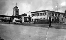 Under the working titles of Ground Crew and Northern Flight, principal photography took place in 1938, at the Grand Central Air Terminal at Glendale, California.[3] At the time, media attention had been focused on the record-breaking circumnavigational flight of the globe in 1938 by Howard Hughes. RKO had considered incorporating newsreel footage of the flight by Hughes in the trailer for Sky Giant.[4] B-movie specialist Lew Landers, was very familiar with aviation and would eventually helm nine aviation films including Without Orders (1936), Flight from Glory (1937), Air Hostess (1939) and Arctic Flight (1952).