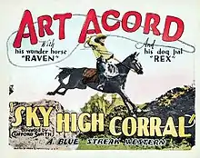 Sky High Corral is a 1926 American silent Western film directed by Clifford Smith and starring Art Acord, Marguerite Clayton and Duke R. Lee.[1]