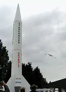 Skybolt is a single stage space rocket designed and assembled by Starchaser Industries. It functions effectively as a scale model of Starchaser Industries' proposed Space Tourism Vehicle, "Thunderstar". Designed and built over 7 months and unveiled in 2006, Skybolt has yet to perform a full-scale test launch. Since 2007, Skybolt has been fitted to a custom mobile platform and tours the country with Starchaser's Educational Outreach Team.