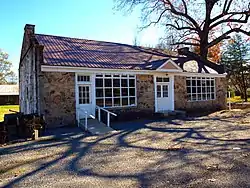 The Skyline Commissary (also known as the Rock Store) is a historic building in Skyline, Alabama. It was built in 1935 as part of Skyline Farms, a project of the Resettlement Administration, a New Deal program that sought to provide jobs for unemployed farmers on collective farms.[2] The commissary sold food to both co-op members and surrounding residents, and served as the hub of social activity for the community. The co-op operated until the end of World War II, when it was sold to private owners. The commissary continued to operate as a general store for the community until the early 2000s. It was converted into a heritage museum in 2005. Like other New Deal structures, the commissary makes heavy use of local materials. The walls are of locally quarried limestone, and the façade features a pedimented portico covering double entry doors. The entry is flanked by two large, multi-paned fixed windows. A gable-roofed ell was added to the north of the rear side in 1937.[3] The house was listed on the National Register of Historic Places in 2013.[1]