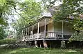 The Slack–Comstock–Marshall Farm is a farm in Uniontown, Arkansas. Built in 1918, the farmhouse was constructed in the Plain Traditional style and has an uncommon vernacular design. The house was originally built as a small building and was later expanded by adding rooms, a common practice at the time. However, the Slack–Comstock–Marshall farmhouse is unusual in that it was expanded by a large three-room, 1+1⁄2-story addition with a cross gable roof. A wraparound porch was also added to the house to integrate the large addition with the rest of the design. The farm was used by three families to raise livestock and grow cotton, corn, and strawberries; it is now owned by descendants of the Marshall family.[2]