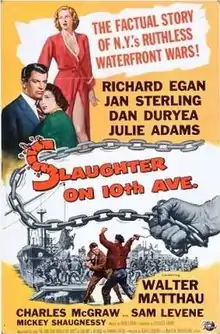 Slaughter on Tenth Avenue is a 1957 American film noir crime film directed by Arnold Laven and starring Richard Egan, Jan Sterling, Dan Duryea, Julie Adams, Walter Matthau, Charles McGraw and Sam Levene.[1]