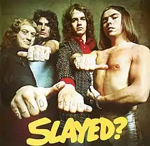 Slayed? is the third studio album by the British rock group Slade. It was released on 1 November 1972 and reached No. 1 in the UK. It remained on the chart for 34 weeks and was certified Silver in early 1973.[1][2] The album was also the band's most successful of the 1970s in the US, peaking at No. 69 and remaining in the charts for 26 weeks.[3] In Australia, the album reached No. 1 and went Gold, knocking the band's live album Slade Alive! to No. 2.[4][5][6] Slayed? was produced by Chas Chandler.