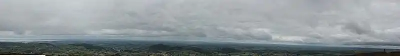 Slieve Gullion (from Irish: Sliabh gCuillinn, meaning 'hill of the steep slope'[2] or Sliabh Cuilinn, "Culann's mountain")[3] is a mountain in the south of County Armagh, Northern Ireland. The mountain is the heart of the Ring of Gullion and is the highest point in the county, with an elevation of 573 metres (1,880 ft). At the summit is a small lake and two ancient burial cairns, one of which is the highest surviving passage grave in Ireland. Slieve Gullion appears in Irish mythology, where it is associated with the Cailleach and the heroes Fionn mac Cumhaill and Cú Chulainn. It dominates the countryside around it, offering views as far away as Antrim, Dublin Bay and Wicklow on a clear day.[4] Slieve Gullion Forest Park is on its eastern slope.