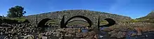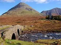 The Sligachan Old Bridge was built between 1810 and 1818 by engineer Thomas Telford. The bridge is for pedestrians and cyclists only following construction of a new road bridge parallel to it on the A87. It was listed as a Category B and scheduled in 1971 and 1974, respectively. Historic Environment Scotland de-scheduled the bridge in 2016 (the listing remains in place).[3]