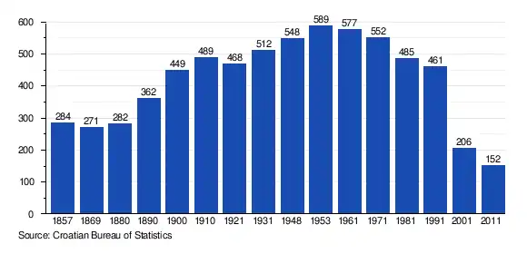 According to the 1991 census,[2] 84.82% of the village population were ethnic Serbs (391/461), 7.81% were ethnic Croats (36/461), 0.86% were Yugoslavs (4/461), and 6.51% were of other ethnicity( 30/461).