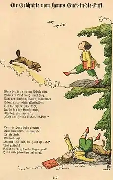 One example from fictional literature is Heinrich Hoffmann's character of "Johnny Head-in-Air" (Hanns Guck-in-die-Luft), in Struwwelpeter (1845). (Some researchers see several characters in this book as showing signs of child psychiatric disorders).[41]