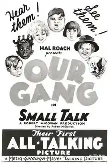 Small Talk is a 1929 Our Gang short comedy film directed by Robert F. McGowan.[2] Produced by Hal Roach and released to theaters by Metro-Goldwyn-Mayer, it was the 86th entry in the Our Gang series to be released, and the first to be made with sound.[3]
