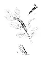 Larva green with darker pale-edged dorsal line; the other lines pale, the subspiracular becoming white on anal segments.