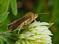 The moth flies from April to August depending on the location.
