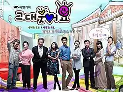 Smile, You (Korean: 그대, 웃어요; RR: Geudae, Useoyo) is a 2009 South Korean television series starring Lee Min-jung and Jung Kyung-ho, in their first leading roles in a Korean drama. Directed by Lee Tae-gon and written by Moon Hee-jung, it aired on SBS from September 26, 2009 to March 7, 2010 on Saturdays and Sundays at 21:45 for 45 episodes. In the drama, a wealthy household's fall from grace forces them to bunk with their ex-chauffeur's family.[1]