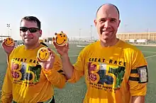 The Smiley cookie is a trade-marked cookie that is distributed by the Eat'n Park Corporation of Homestead, Pennsylvania through their restaurants & online business, smileycookie.com. The signature Smiley Cookie was adapted from a cookie an employee enjoyed as a child in Western PA. Eat'n Park began baking their version in 1986 and coincided with the addition of in-store bakeries at its locations. The Smiley Cookie was first produced by Warner's Bakery, a small bakery in Titusville, Pennsylvania.[1] It was trademarked in 1987.[2] The Smiley Cookie became so popular that it was added to the logo of Eat'n Park. A competitor, Kings Family Restaurants produced the "Frownie", a brownie decorated with a frowning face. The "Frownie" was discontinued in 2015 (Later returned in early 2019) after Kings was sold to a private equity firm.[3] Eat'n Park filed several lawsuits against companies outside the restaurants' operating area to enforce its trademark[4] on the Smiley Cookie.[2][5][6] The costumed Smiley cookie made appearances throughout the Pittsburgh region and travels in a 1974 DIVCO Milk truck, which is now a branded-van known as the "Cookie Cruiser".[7]
