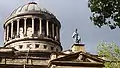 | Supreme Court of Victoria and Supreme Court Library | 1874–1884 | Smith & Johnson | Academic Classical, in the high Victorian period | 192 Williams Street, Melbourne, Victoria | Smith and Johnson collaborated on a competition for the project in 1873, prior to Johnson's resignation from the PWD. The total complex, including the central library, was designed documented by the newly formed practice of Smith and Johnson, cooperating with the Public Works Department. The planning of the building is notable for a sophisticated separation of the main classes of users (judiciary, judges, public and prisoners) based on design models developed for the London Law Courts competition of 1868, and widely published. It also features an early example of a thermal chimney system for ventilation of the individual courts, using air drawn down into a subfloor area through a large shaft in the corner of each courtroom, and a cross ventilated false ceiling space creating negative pressure to draw air out of the court ceiling space. This system was necessitated in part by the use of large gasoliers to light the courtroom areas. The building features a large dome supported by columns of the ionic order. This area of the library structure is largely decorative (the main functional areas of the library are located in the lower two levels) and is heavily influenced by James Gandon's Four Courts in Dublin, Ireland. | ![]() |