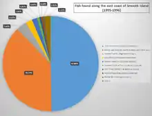 Pie chart depicting the types of fish found along the east coast of Smooth island between 1995 and 1996