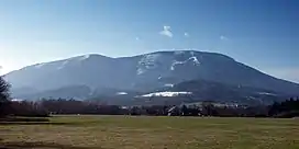 Smrk is a massif and a mountain in the Moravian-Silesian Beskids range in the Czech Republic. With a height of 1,276 m (4,186 ft) it is the second highest summit of the range after Lysá hora. Its Northern slope steeply rises from the surrounding lowlands and is separated from the rest of the mountains by the deep Ostravice River (in the East) and Čeladenka (in the West) river valleys; in the South it merges in the lower Zadní hory (i.e. Rear mountains) area.