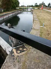 To remedy this situation, a new chamber was built below the lock creating a staircase lock. Since the lock was only needed to get the boats over the lower cill, the bottom lock only had a minimum rise, and would not even be needed on good spring tides, or during high river flows. A sluice was built into the side of the chamber to allow emptying, filling being performed from the lock above.