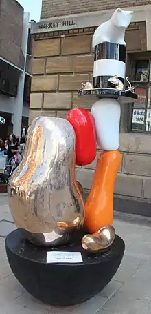 A Snowy Farr memorial artwork, designed by Gary Webb,[6] was unveiled outside the Guildhall in Cambridge's Market Square in August 2012. The statue resembles a combination of Farr's tame cat and mice, whereby his cat was trained to sit atop his hat, and the mice trained to run circuits of the rim.
