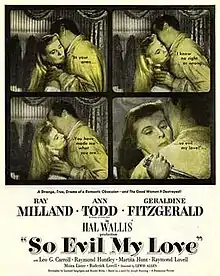 So Evil My Love is a 1948 British and American Gothic psychological thriller film directed by Lewis Allen and starring Ray Milland, Ann Todd and Geraldine Fitzgerald.[1]