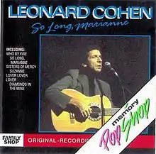 So Long, Marianne is a compilation album by Leonard Cohen, issued in 1989 and in 1995. It features songs from his first four albums, already covered by his 1975 best of album. Although not authorized by the artist, the album is nevertheless an official release, as Cohen's label issued it. The CD was available in several countries with different art covers and in different cheap CD series (Pop Shop in Germany, Collectors Choice in the UK, Memory Pop Shop in the Netherlands, Redhot in the UK), and also as audio cassette with four extra songs.