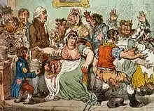 Despite objections from those medical practitioners who still practised variolation, and who foresaw a decline in their income, free vaccination of the poor was introduced in the UK in 1840. Because of associated deaths, variolation was declared illegal in the same year.[95] Vaccination was made compulsory in England and Wales by the 1853 Vaccination Act, and parents could be fined £1 if their children were not vaccinated before they were three months of age. The law was not adequately enforced, and the system for providing vaccinations, unchanged since 1840, was ineffective. After an early compliance by the population only a small proportion were vaccinated.[96] Compulsory vaccination was not well received and, following protests, the Anti-Vaccination League and the Anti-Compulsory Vaccination League were formed in 1866.[97][98] Following the anti-vaccination campaigns there was a severe outbreak of smallpox in Gloucester in 1895, the city's first in twenty years; 434 people died, including 281 children.[99] Despite this, the British government conceded to the protesters and the Vaccination Act of 1898 abolished fines and made provision for a "conscientious objector" clause – the first use of the term – for parents who did not believe in vaccination. During the following year, 250,000 objections were granted, and by 1912 less than half of the population of newborns were being vaccinated.[100] By 1948, smallpox vaccination was no longer compulsory in the UK.[101]