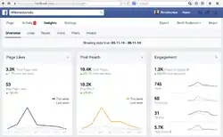 Facebook has their own analytic platform which allows the user to see how other users are interacting with their posts, with the use of multiple metrics.[4] This is not something the average user uses, but rather a tool that is used by pages or public figures for example. For example, Facebook pages that represent a business often look at the activity their posts have generated. There are three types of reach that can be looked at on the Facebook analytic platform.