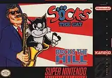 Socks the Cat Rocks the Hill is a platform video game developed by Realtime Associates for the Super Nintendo Entertainment System. The game stars Socks, the real-life presidential pet of the Clinton family during Bill Clinton's tenure in office. Originally scheduled for release in the fall of 1993, Socks the Cat experienced delays until it was ultimately canceled due to the closure of publisher Kaneko's U.S. branch in the summer of 1994. The game was complete, however, and review copies were still distributed to gaming publications. A prototype cartridge of the SNES version eventually entered the hands of private collectors, and a Kickstarter campaign to fund a relaunch of the game was started. The campaign was successfully funded and the game originally anticipated a July 2017 release, but it was delayed until February 1, 2018. Its ROM image was soon released to the public.