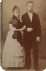 After the wedding, the couple spent their honeymoon in Portugal. Later, they initially moved to Lutosławski's family estate in Drozdowo, where they were very pompously greeted by Casanova's in-laws. Initially, she communicated with her husband and his family only in French; it was only gradually that she was picking up more and more Polish.[28] According to many accounts, she soon won the hearts and minds of all the Lutosławski family with her natural, cheerful, open and unassuming personality.[29] Following a brief spell in Switzerland, where Lutosławski obtained his PhD title, they spent the next few years shuttling across Russia, as Lutosławski was either employed or was seeking employment in universities of Dorpat, Helsinki, Moscow and Kazan. They returned to Drozdowo in 1895 and lived there intermittently until 1899. By that time, they had already four children, all of them daughters: María, Izabela, Yadwiga and Halina, born between 1888 and 1897.[30] Yadwiga died of dysentery in 1895, plunging Cavanova into a severe depression.[7] The couple and their family traveled to Galicia every summer, which allowed Cavanova to maintain a direct relationship with her homeland. Absorbed by family duties Casanova has almost ceased to write; her only literary attempt of the time is a set of short stories based on her own experiences in what was still an exotic country to her, El doctor Wolski: páginas de Polonia y Rusia, published in Madrid in 1894. The volume was translated into Polish and went to print as Doktór Wolski: (Kartki z życia Polaków i Rosyan) in 1907.