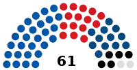 The Sofia City Council is the legislature of the City of Sofia.[3] It has 61 members, 27 of which are from GERB, 15 are from BSP, 12 are from Democratic Bulgaria, 5 are from Patriots for Sofia and 2 are independent.[4]