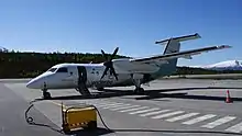 The road to the airport was frequently closed and in 1978 a dorm was built to allow the employees to overnight should they get caught by a blizzard. A new fire station was built in the early 1980s.[7] This allowed Widerøe to introduce the de Havilland Canada Dash 7 on the route from Florø and Sogndal to Oslo Airport, Fornebu in September 1983.[9] This was followed up with a new and larger terminal and the renovation of the tower in 1985.[7] Widerøe replaced its Twin Otters and Dash 7s with the de Havilland Canada Dash 8 in the early 1990s.[10]