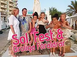 Sol, Fest och Oroliga Föräldrar (English translation: Sun, Celebration and Concerned Parents) is the Swedish version of Sun, Sex and Suspicious Parents, a reality/documentary television programme originating in the UK. The basic premise is that teenagers go on holiday under the impression they're being filmed for a stereotypical reality show, without knowing their parents also go to the holiday resort to spy on what their children are doing. The programme has had one series to date, with eight episodes within it.