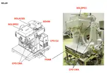 SOLAR[1] was an ESA science observatory on the Columbus Laboratory, which is part of the International Space Station. SOLAR was launched with Columbus on February 2008 aboard STS-122. It was externally mounted to Columbus with the European Technology Exposure Facility (EuTEF). SOLAR has three main space science instruments: SOVIM, SOLSPEC and SOL-ACES.[2] Together they provide detailed measurements of the Sun's spectral irradiance.[3] The SOLAR platform and its instruments are controlled from the Belgian User Support and Operations Centre (B.USOC), located at the Belgian Institute for Space Aeronomy (BISA) in Uccle, Belgium.