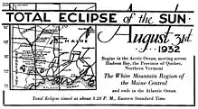 A total solar eclipse occurred on August 31, 1932. A solar eclipse occurs when the Moon passes between Earth and the Sun, thereby totally or partly obscuring the image of the Sun for a viewer on Earth. A total solar eclipse occurs when the Moon's apparent diameter is larger than the Sun's, blocking all direct sunlight, turning day into darkness. Totality occurs in a narrow path across Earth's surface, with the partial solar eclipse visible over a surrounding region thousands of kilometres wide. Totality was visible from Northwest Territories (today's Northwest Territories and Nunavut) and Quebec in Canada, and northeastern Vermont, New Hampshire, southwestern Maine, northeastern tip of Massachusetts and northeastern Cape Cod in United States.