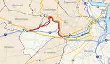 Soldiers Field Road is a major crosstown parkway in Boston, Massachusetts, running west to east from U.S. Route 20 in the northwest corner of Brighton to the Boston University Bridge.[1] It follows the course of the Charles River and also passes by the campuses of Harvard University and Boston University. The road is named for the area south of the road on a bend in the Charles River which has been the home of Harvard Crimson athletics since the 1890s.