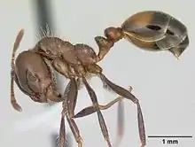 The black imported fire ant (Solenopsis richteri), or simply BIFA, is a species of ant in the genus Solenopsis (fire ants). It was long thought to either be a subspecies or a color variation of Solenopsis invicta (the red imported fire ant, or simply RIFA), but is now recognized as its own species with a demonstratively different range and living habits. BIFA seem to be more tolerant of cold and a less dominant species than RIFA. Due to the BIFA higher body content of water than the RIFA conclusions demonstrate the certain factor plays a role in their differences of living regions.[1]