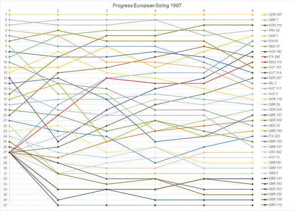 {{cite web}}: CS1 maint: date format (link) CS1 maint: url-status (link) - "Soling European Championship" (ASCII). site-isaf.soticcloud.net. World Sailing. 6–12 September 1997 [1997]. Retrieved 27 January 2022.