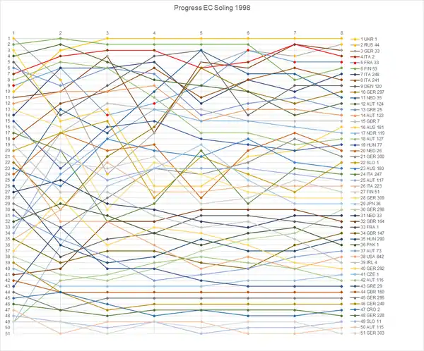 | 34 | Heiko Winkler | Stefan Wenzel Jens Niemann | GER 288 | 32 | 38 | 47 | 53 | 49 | 55 | 24 | 30 | 20 | 26 | 7 | 13 | 269 | 214 | |||