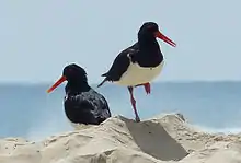 Seabirds, shorebirds, waders, waterfowl and raptors depend on marine and estuaryine habitats.[23][24] The Solitary Islands are an important breeding area for marine birds such as Osprey (Pandion cristatus),[3] while threatened species such as the Australian Pied Oystercatcher (Haematopus longirostris), Sooty Oystercatcher (H. fuliginosus) and Beach Stone-curlew (Esacus magnirostris) are local shorebirds that breed in the Marine Park.[25] It also periodically hosts three endangered marine birds, Gould’s Petrel (Pterodroma leucoptera), Wandering Albatross (Diomedea exulans) and Southern Giant Petrel (Macronectes giganteus).[26]