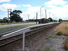 Solway railway station is a suburban railway station serving Solway and the southern end of Masterton, New Zealand. The station is located on the Wairarapa Line, 88.1 km (54.7 mi) north of Wellington and 2.9 km (1.8 mi) south of Masterton. The Wairarapa Connection serves the station several times daily with services to Wellington and Masterton. The station has a single track served by a four-car platform on the Ngaumutawa Road side.