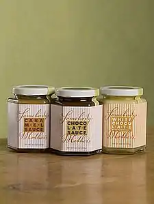 Somebody's Mother's Chocolate Sauce makes gluten-free and kosher dessert sauces in jars.[8][9][10][11] It also carries gift packages in their online store.[12]