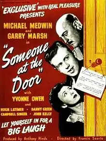 Someone at the Door is a 1950 British crime comedy film directed by Francis Searle and starring Michael Medwin, Garry Marsh and Yvonne Owen.[2]