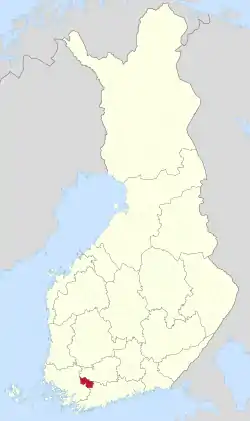 Somero (Finnish pronunciation: [ˈsomero]) is a town and municipality of Finland. It is part of the Southwest Finland region in the province of Western Finland, located 36 kilometres (22 mi) northeast of Salo, 86 kilometres (53 mi) east of Turku and 105 kilometres (65 mi) northwest of Helsinki. The municipality has a population of 8,564 (31 December 2021)[2] and covers an area of 697.67 square kilometres (269.37 sq mi) of which 29.9 km2 (11.5 sq mi) is water.[1] The population density is 12.82 inhabitants per square kilometre (33.2/sq mi). Somero is unilingually Finnish.